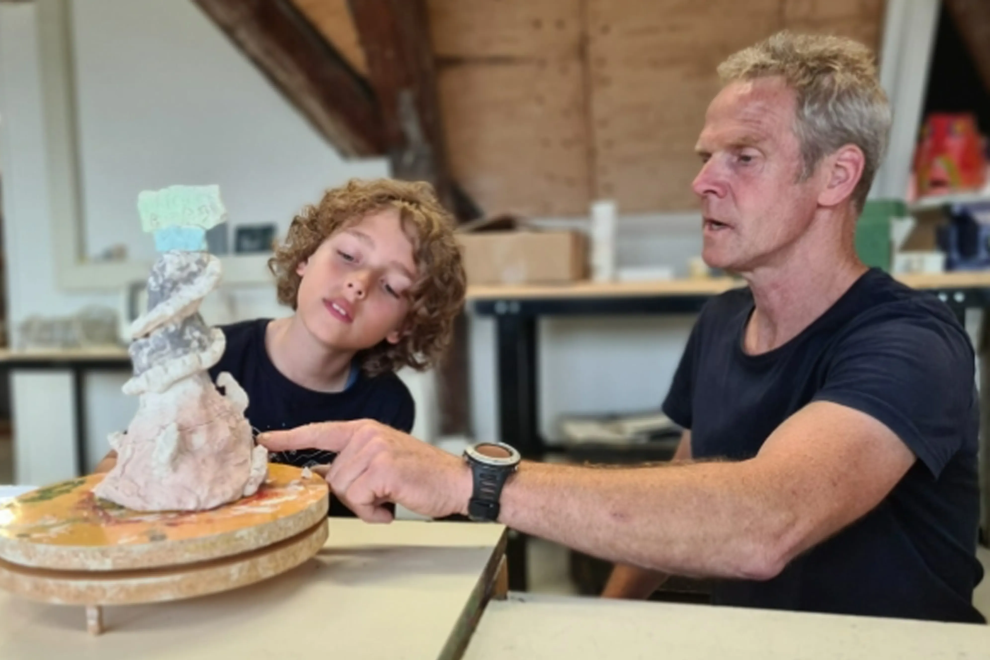 - Werken met materialen als houtskool, hout, klei, verf, speksteen, papier-maché