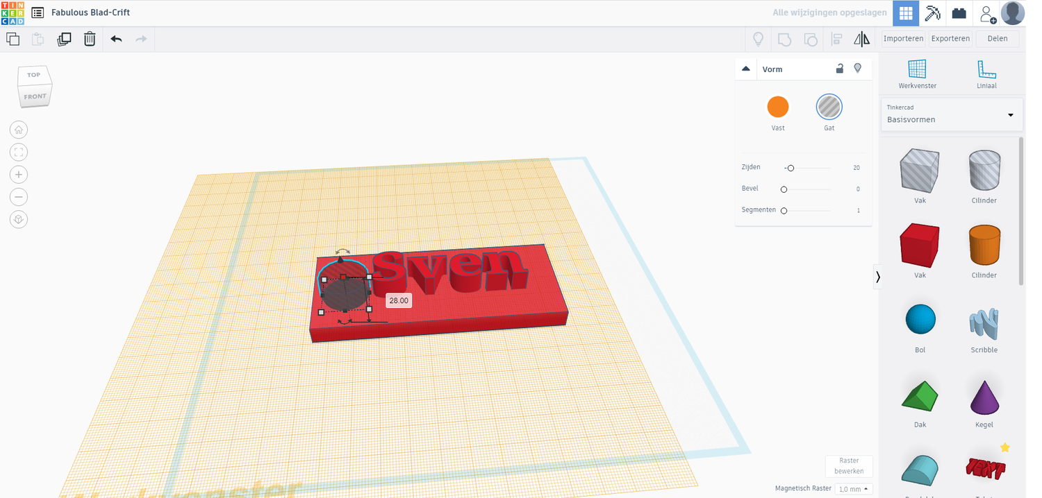 We hebben nu een sleutelhanger gemaakt. Wil je deze laten printen, kom dan langs bij de Makersbase in de Nieuwe Veste. Daar helpen we je graag.